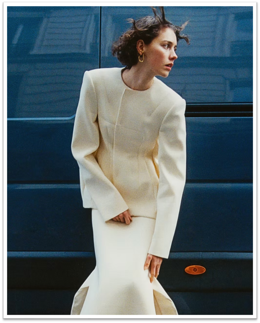 This one sounds simple, but it does more than you think. A garment that sits correctly on your shoulders naturally pulls your posture open — chest lifted, spine straight — without you having to think about it. Professor Karen Pine at the University of Hertfordshire found that when women feel stressed or unhappy, they neglect over 90% of their wardrobe and default to baggy, body-hiding clothes. It’s an understandable instinct to shrink, camouflage, and disappear. But the research suggests the opposite helps more: wearing something that fits well, flatters your body, and reminds you of a time you felt good. The shoulders are where this starts. When your jacket fits there, everything else follows.